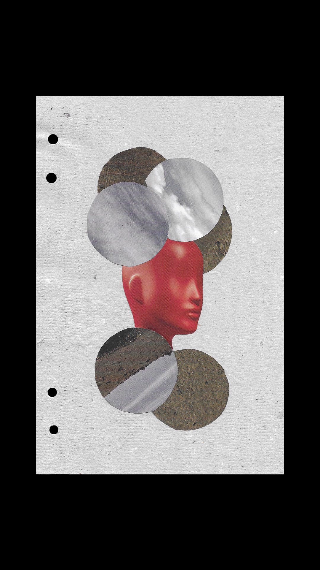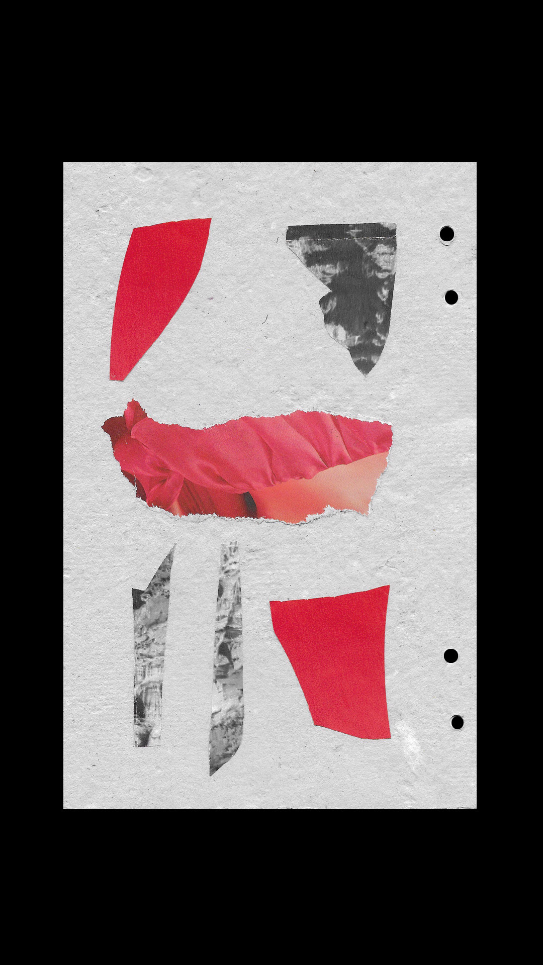 Two volumes, ring bound, thirty collages. Texts composed with transferable letters.